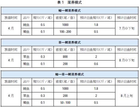 1. 放養(yǎng)模式設(shè)計(建議根據(jù)池塘條件合理選擇)(見表1)。