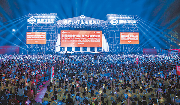 “智能制造新引擎 綠色發展中國夢——世界首條工業4.0高效電池生產線投產儀式暨通威35年慶”圓滿舉行9月20日,“智能制造新引擎 綠色發展中國夢——世界首條工業4.0高效電池生產線投產儀式暨通威35年慶”隆重舉行。著名相聲小品演員郭冬臨、著名香港歌星容祖兒、華裔歌星費翔、“最美女中音”歌唱家降央卓瑪、“四川好聲音”譚維維、空政文工團青年歌唱家劉和剛以及黃訓國、胡栓栓、劉歡歡、澤旺多吉四大青年男高音歌唱家聯袂獻上精彩表演;世界首條工業4.0高效電池生產線投產亮燈儀式、劉漢元主席新書全球首發、通威員工大合唱《通威之歌》震撼“上映”。當晚慶典氣勢恢宏、華燈璀璨、群星云集,為現場4300余名來賓帶來了一場令人難忘的華彩之夜,共賀通威35年華誕!