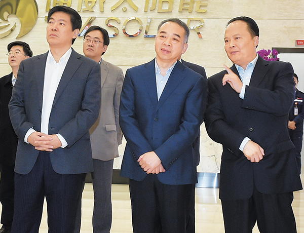 劉漢元主席陪同范銳平書記、羅強市長視察通威太陽能廠區