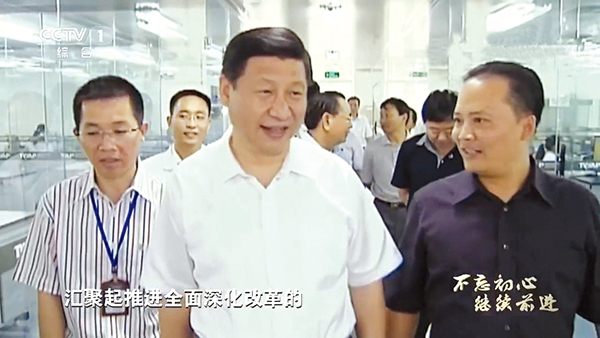 2017年10月8日,央視播出劉漢元主席陪同習(xí)近平總書記視察通威(海南)水產(chǎn)食品有限公司的畫面