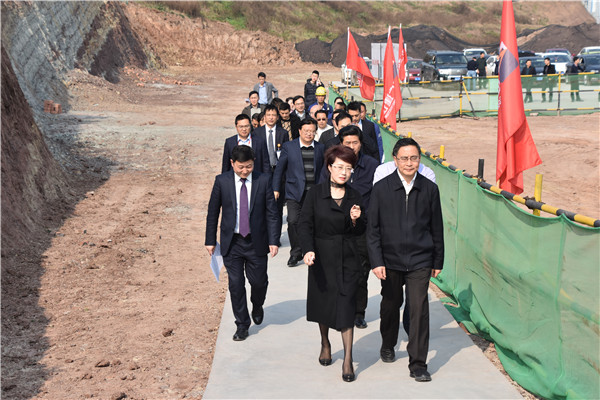 在禚玉嬌總裁陪同下,彭宇行副省長視察永祥股份樂山新項目建設現場