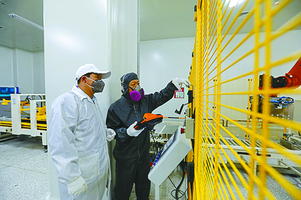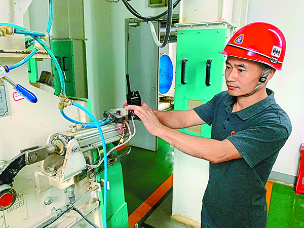 云永利與員工檢查設(shè)備運(yùn)行情況