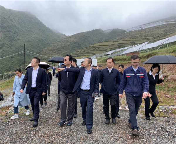 全國(guó)工商聯(lián)專職副主席謝經(jīng)榮,全國(guó)工商聯(lián)副主席、四川省政協(xié)副主席、四川省工商聯(lián)主席陳放調(diào)研通威喜德光伏項(xiàng)目