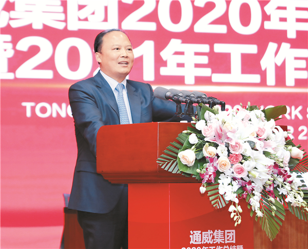 大會開幕式由集團副總裁黃其剛主持。禚玉嬌總裁首先作2020年度集團工作總結及2021年經營計劃,郭異忠總裁作2020年度通威股份工作總結,謝毅董事長作2021年度通威股份工作計劃。