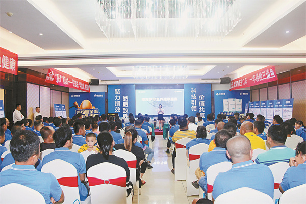 與此同時,為深入貫徹通威質(zhì)量方針,通威農(nóng)牧各片區(qū),各分、子公司相繼開展尋找養(yǎng)殖高手等系列活動,探尋營銷轉(zhuǎn)型的最新路徑,全面提升合作伙伴的養(yǎng)殖效益。11月6日,海南海壹營銷轉(zhuǎn)型第一站暨羅非魚養(yǎng)殖爭霸賽在瓊海市舉行。會上,海南海壹總經(jīng)理張磊從通威的科技引領(lǐng)到產(chǎn)品力的打造,為養(yǎng)殖戶剖析了本次爭霸賽的主要目的及意義,養(yǎng)殖戶紛紛報名參賽并繳納誠意金,現(xiàn)場會議氣氛熱烈,活動火爆。