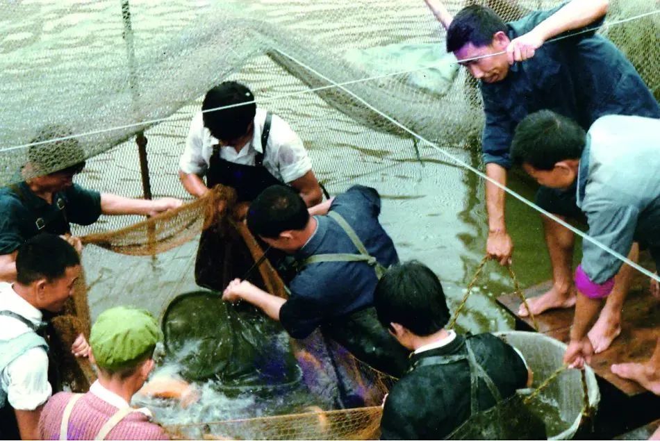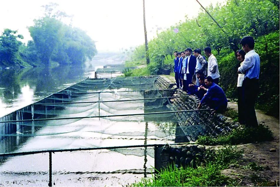 1984年3月,春暖花開,魚兒生長的季節(jié)到了。劉漢元主席把第一批185公斤約3800尾鯉魚苗投放到網(wǎng)箱中,開始了渠道金屬網(wǎng)箱式流水養(yǎng)魚試驗。