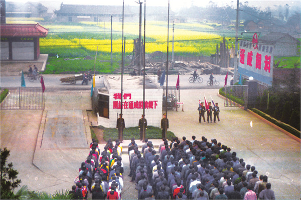 在早期的通威,對于多數來自農村的青年員工而言,這種最普通又最莊嚴的儀式和易懂的歌詞,喚醒了員工內心的神圣感,廣泛有效地傳遞了公司基本的價值觀,形成一種激勵和凝聚,促進了員工自覺增強工作激情和組織紀律性。每次升旗儀式之后,公司的重大事項如上級領導來訪、獲得獎項,或者新制度的頒布、本周獎懲情況等各種消息,現場向員工通報,小小的升旗廣場也成為了早期員工了解公司資訊的重要平臺之一。從此,升旗儀式成了全體通威人的慣例。