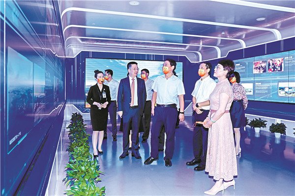 通威集團(tuán)禚玉嬌總裁,通威股份董事長、CEO謝毅陪同趙俊民常委參觀集團(tuán)體驗中心