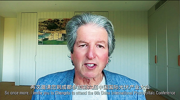 馬丁·格林教授特別為大會錄制了視頻,預祝大會成功召開,他在視頻中表示,將前往成都參加第六屆中國國際光伏產業大會,并期待在那里見到更多的參會者。大會已經成功舉辦了五屆,為中國的光伏技術取得巨大成功發揮了重要作用,非常期待大家能夠參加這次大會。目前,中國在光伏制造和應用方面都是世界領先的,已經安裝了超過400吉瓦的光伏裝置,這一數字遠超其他任何國家。自從上個世紀初中國開始真正開展光伏制造業務以來,團隊就一直與中國的光伏行業密切合作,并從通威開始參與光伏行業的早期就與其建立了合作關系。中國光伏行業發展得非常好,注意到通威集團剛剛加入了《財富》世界500強的行列,為通威集團及其董事局主席劉漢元先生的卓越成就表示祝賀。