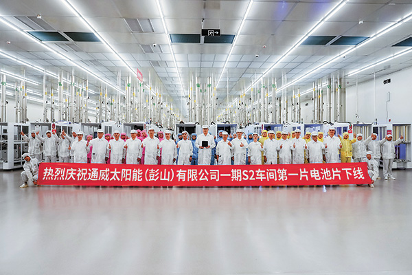 “動工就是沖刺,起跑就是決戰。”8月14日,通威太陽能(電池)彭山基地S2車間第一片電池片順利下線。自第一臺設備進場,到所有工序設備的安裝、調試和優化,再到8月14日首線貫通生產,第一片電池片同步順利下線,標志著S2車間在備戰階段取得了勝利,也標志著生產“戰斗”的序幕正式拉開。