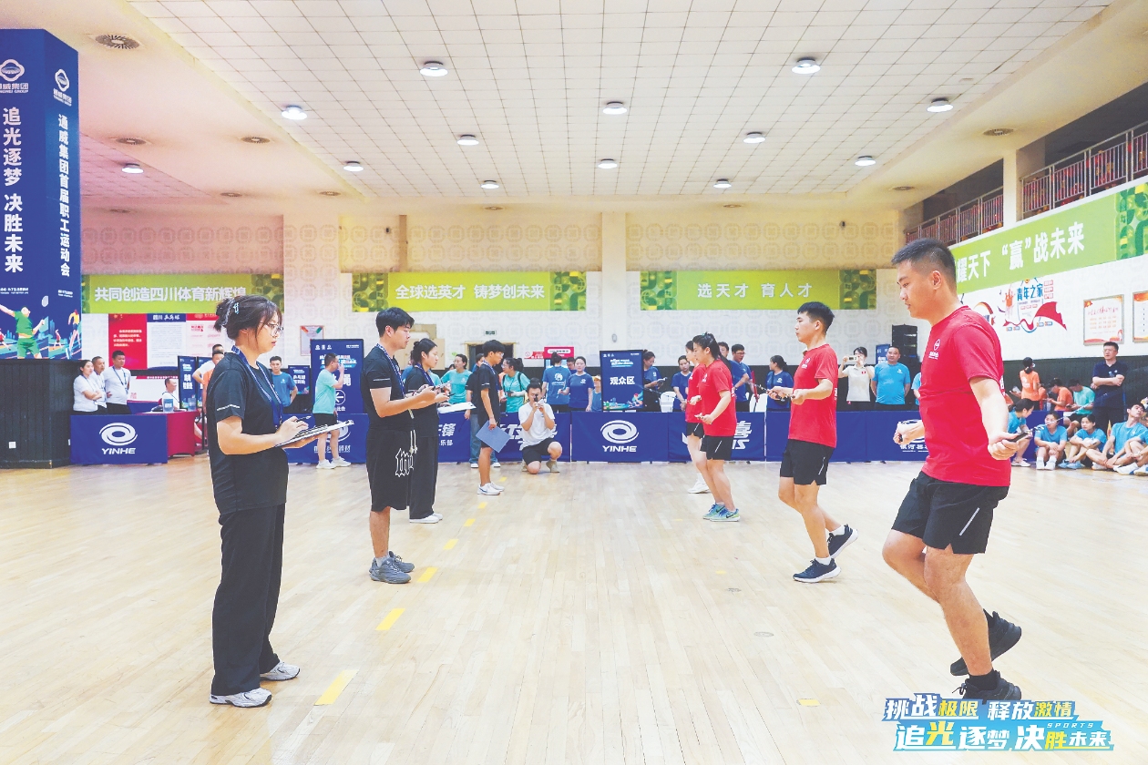 來自通威集團管理總部及相關多元板塊、通威股份管理總部、永祥股份、通威太陽能、通威太陽能科技、通威新能源、通威農發、通威食品共8支代表隊參加田徑、羽毛球、乒乓球、籃球、跳繩、拔河六大類比賽,角逐冠軍。