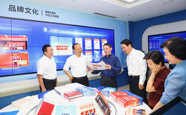 郭強(qiáng)常委、趙俊民常委閱讀《通威報(bào)》了解通威品牌文化建設(shè)