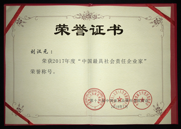 劉漢元主席榮獲“2017中國最具社會責任企業家”大獎