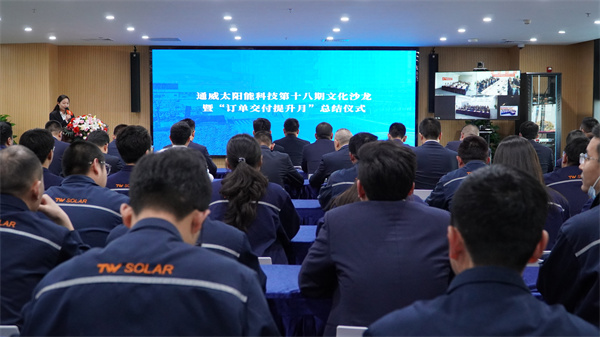 交付成倍增長(zhǎng),共創(chuàng)共贏共享。4月24日,通威太陽(yáng)能科技順利召開(kāi)第十八期文化沙龍暨“訂單交付提升月”總結(jié)儀式。通威股份有限公司總裁助理、通威太陽(yáng)能科技有限公司總經(jīng)理蕭圣義,通威太陽(yáng)能(四川)有限公司總經(jīng)理助理朱劍誠(chéng),通威太陽(yáng)能(合肥)有限公司總經(jīng)理助理李冬生,通威太陽(yáng)能科技有限公司總經(jīng)理助理謝俊杰,南通基地負(fù)責(zé)人及通威太陽(yáng)能科技各基地管理干部及員工代表200余人出席活動(dòng)。