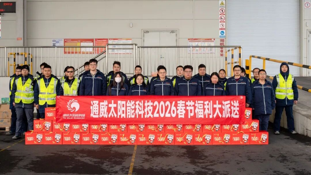 近日,通威集團各基層黨工組織陸續開展新春福利派送活動,在丙午馬年即將到來之際,各單位用實實在在的慰問品向廣大一線職工的辛勤付出表示感謝,以實際行動暖心人、繪同心,共同營造喜迎新年的和諧美好氛圍。