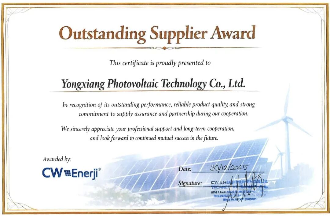 永祥光伏科技獲評土耳其CW公司年度優秀供應商獎