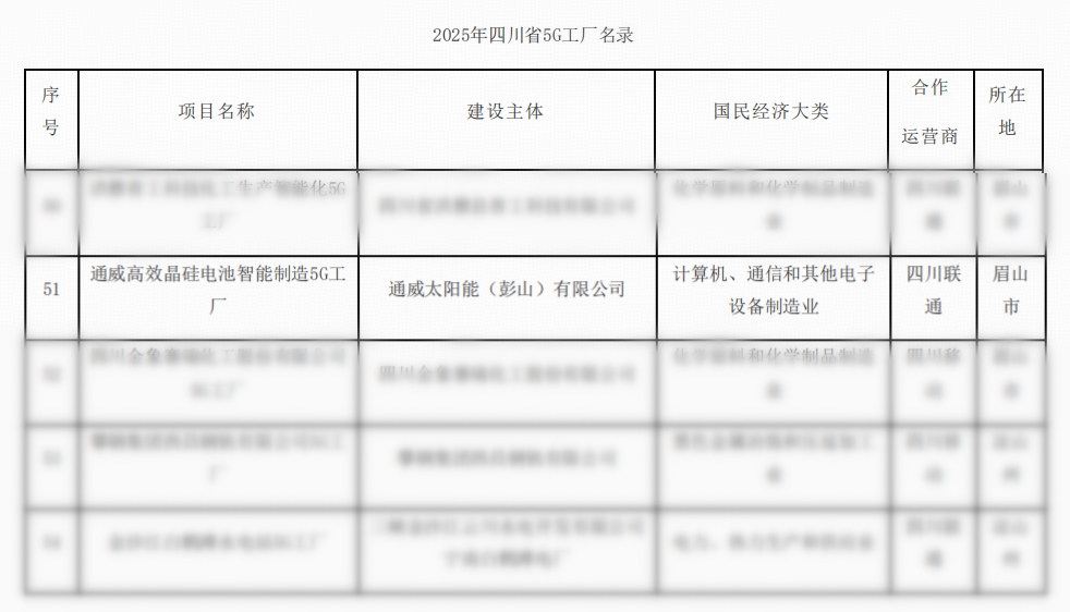 通威太陽能(彭山)有限公司入選“2025年四川省5G工廠名錄”