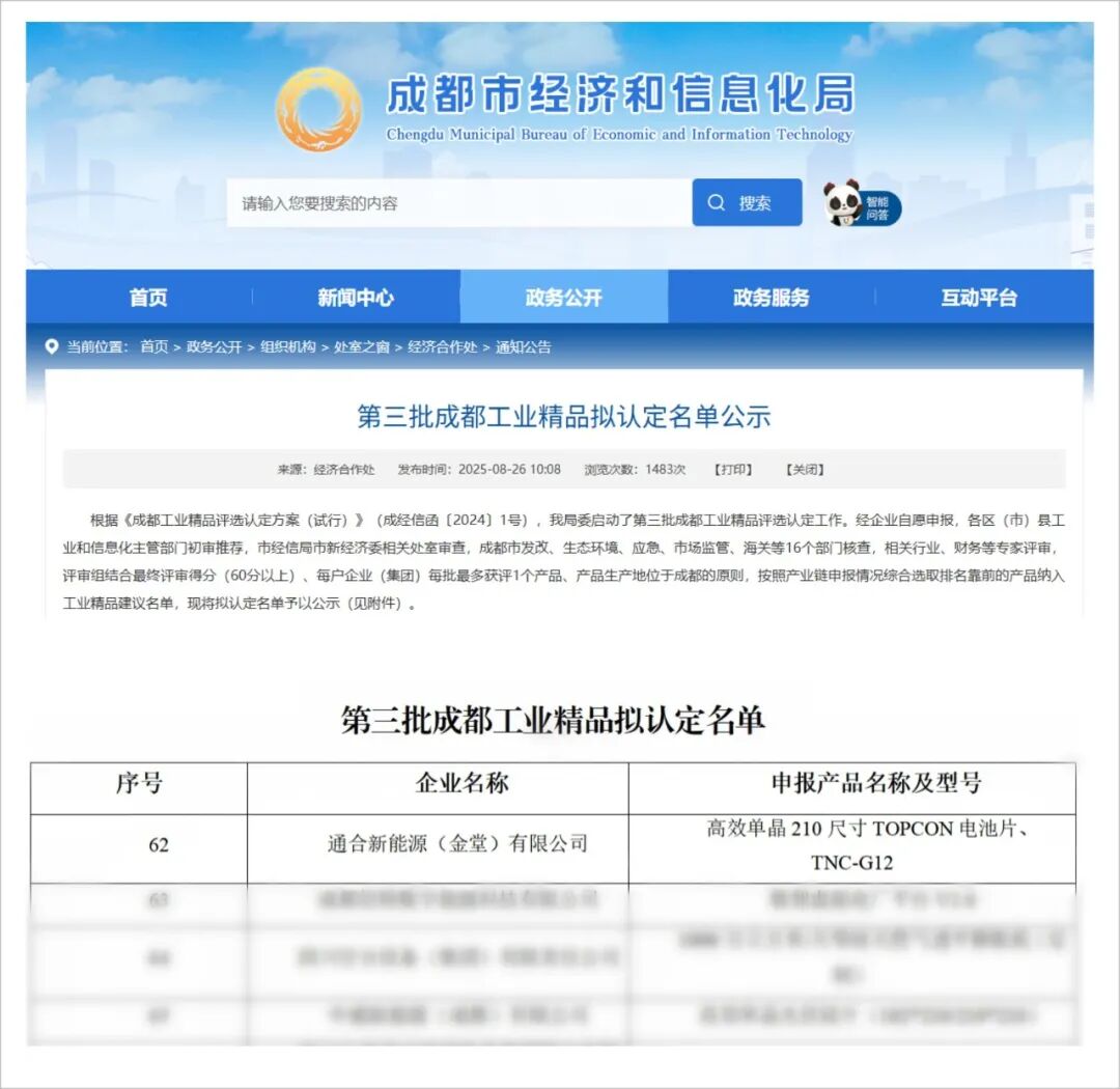 中威新能源(成都)有限公司 榮列“第三批成都工業精品”認定名單