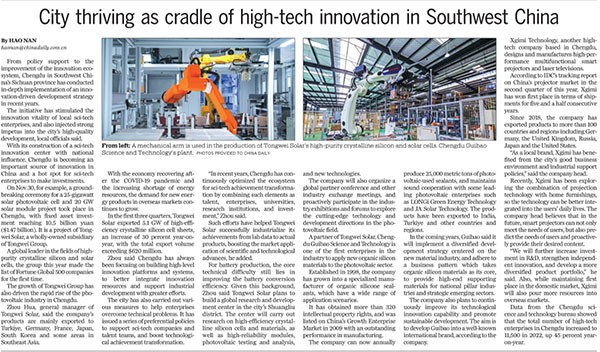 《中國日報》聚焦通威太陽科技創新與發展