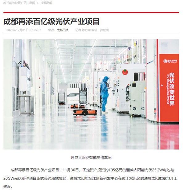 四川新聞網(wǎng)、成都電視臺、成都日報等多家媒體聚焦通威太陽能新發(fā)展新項目