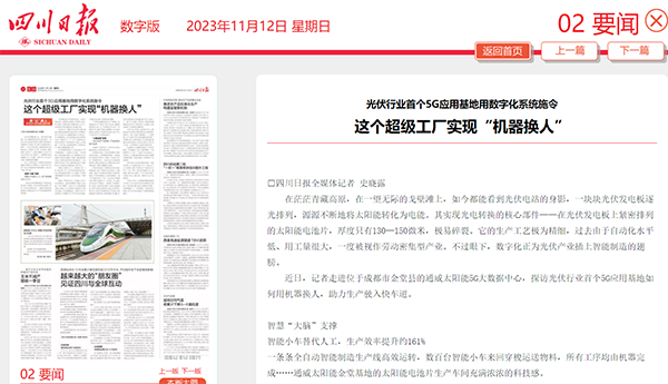 《四川日報》、川觀新聞聚焦通威太陽能數實融合新氣象