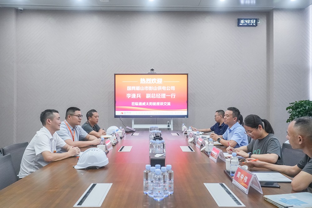 國(guó)網(wǎng)眉山市彭山供電公司副總經(jīng)理李逢兵一行蒞臨通威太陽(yáng)能彭山基地參觀調(diào)研和座談交流