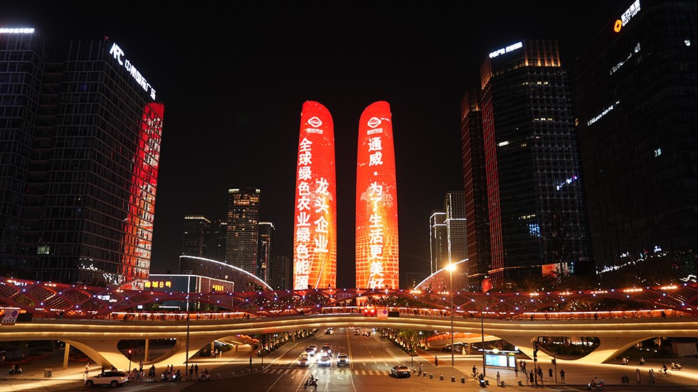 點亮雙子塔!今夜,通威閃耀成都夜空!