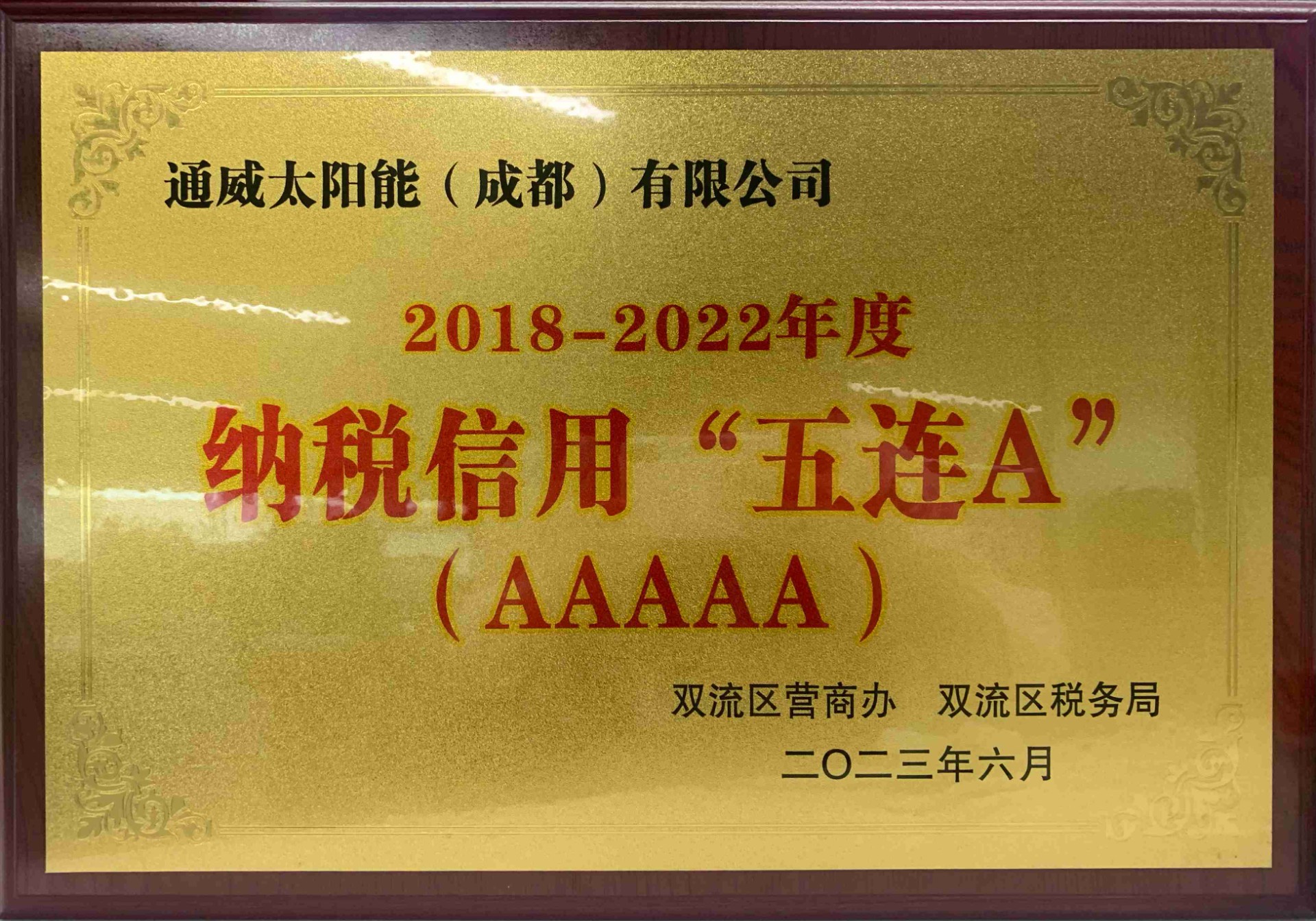 通威太陽能雙流基地連續八年榮膺“A級納稅人”稱號