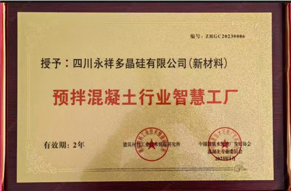 永祥新材料商砼榮獲“預拌混凝土行業智慧工廠”稱號