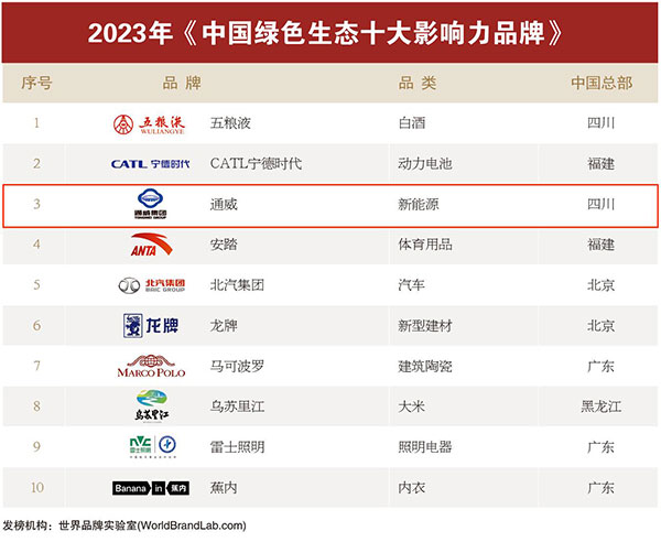 通威榮列“中國綠色生態(tài)十大影響力品牌”榜單