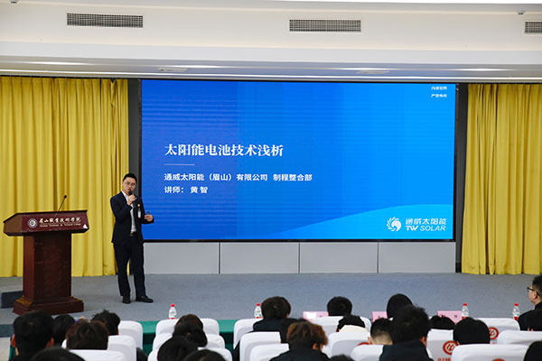 科技創(chuàng)新、科技普及是實(shí)現(xiàn)創(chuàng)新發(fā)展的兩翼,科技人才是創(chuàng)新發(fā)展的強(qiáng)大動(dòng)力。為深入貫徹落實(shí)黨的二十大精神和習(xí)近平總書(shū)記來(lái)川視察重要指示精神,弘揚(yáng)科學(xué)精神,傳播科學(xué)思想,普及科學(xué)知識(shí),促進(jìn)科技人才的成長(zhǎng)和提高,促進(jìn)學(xué)校工作與社會(huì)發(fā)展的共同進(jìn)步,12月14日,眉山市2023年“最美科技工作者”學(xué)術(shù)交流會(huì)在眉山職業(yè)技術(shù)學(xué)院隆重舉行,眉山市科學(xué)技術(shù)協(xié)會(huì)副主席夏放主持,通威太陽(yáng)能眉山基地總經(jīng)理助理、黨總支書(shū)記姚騫受邀作為眉山市首屆“最美科技工作者”代表攜眉山基地技術(shù)骨干與莘莘學(xué)子授課交流,學(xué)校師生近300人參與其中。