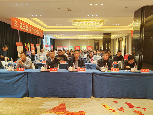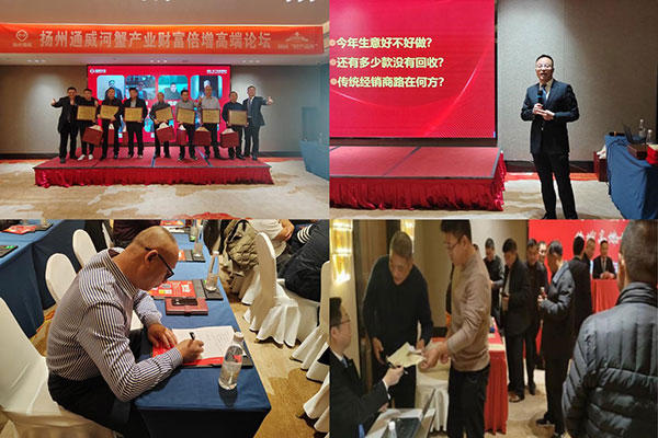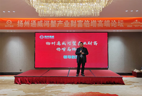 12月9日,揚州通威于泰州興華金陵國際酒店順利召開河蟹產業財富倍增高端論壇會,華東一區總經理賈光文、揚州公司副總經理文昌齊,華東一區特水技術總監楊英豪、公司所有中層管理人員以及來及省內外河蟹養殖行業50名優質經銷商朋友齊聚一堂,共同參加此次會議。