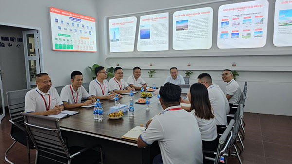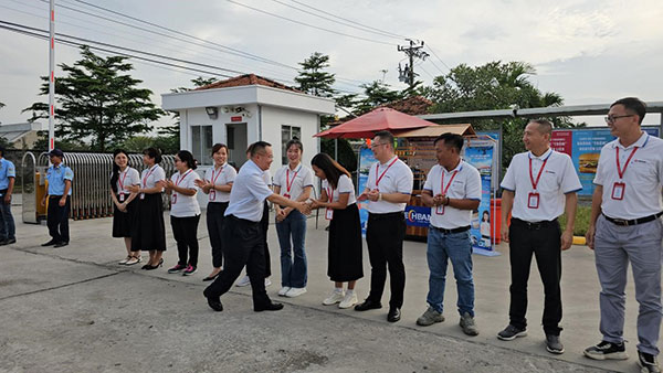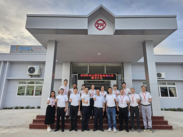 越南天邦公司總經理劉彥、生產部經理王瑞平以及相關部門經理陪同郭總前往公司廠區和車間視察工作。王經理向郭總說明了目前越南天邦車間運行情況,