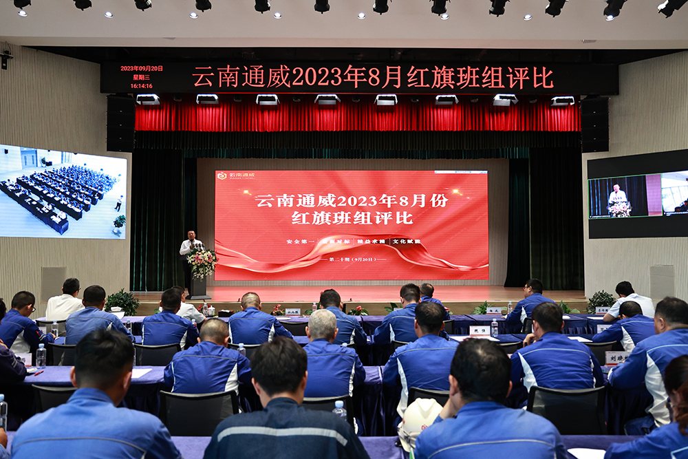 9月20日,云南通威召開8月份紅旗班組評比會。永祥股份副總經理、云南通威總經理杜炳勝及總經辦管理干部出席活動并擔任評委,相關部門負責人、工段管理干部及班組成員參加會議。