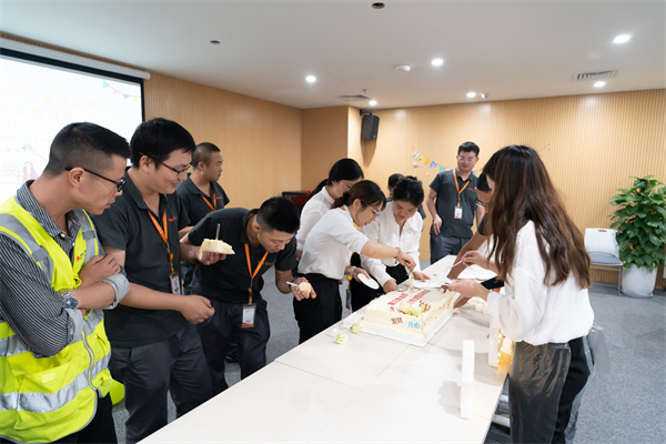 組件鹽城基地壽星們分切蛋糕