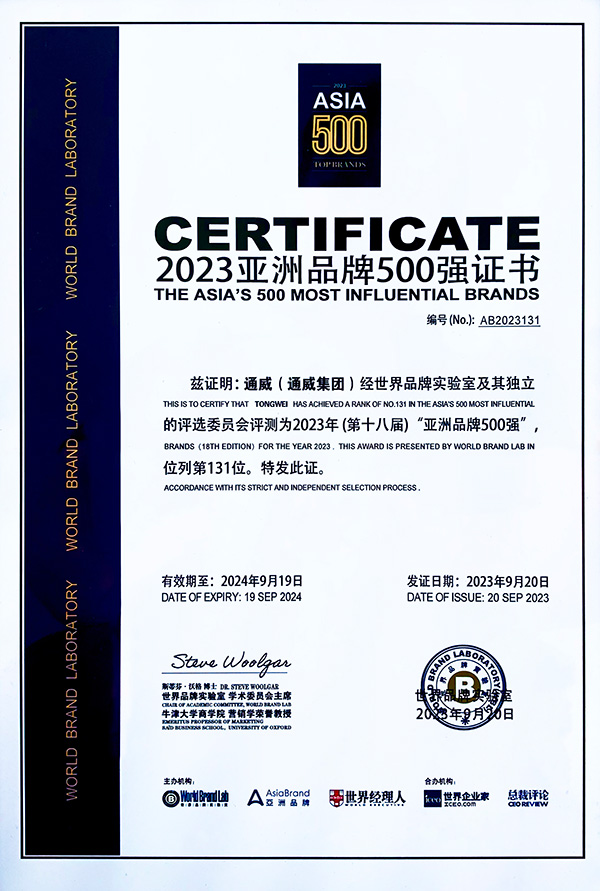 9月20日,由世界品牌實驗室(World Brand Lab)主辦的“亞洲品牌大會”在香港召開,會上發(fā)布了2023年《亞洲品牌500強》排行榜。通威再次榮列該榜單,排名第131位,較去年躍升14位,繼續(xù)蟬聯全球水產和光伏兩大行業(yè)第一。榜單發(fā)布恰逢通威41歲生日,為通威獻上了一份生日禮物。
