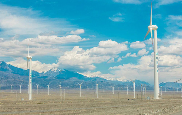 新疆烏魯木齊達坂城片區風機與雪山交相輝映(圖片來源:新華社)