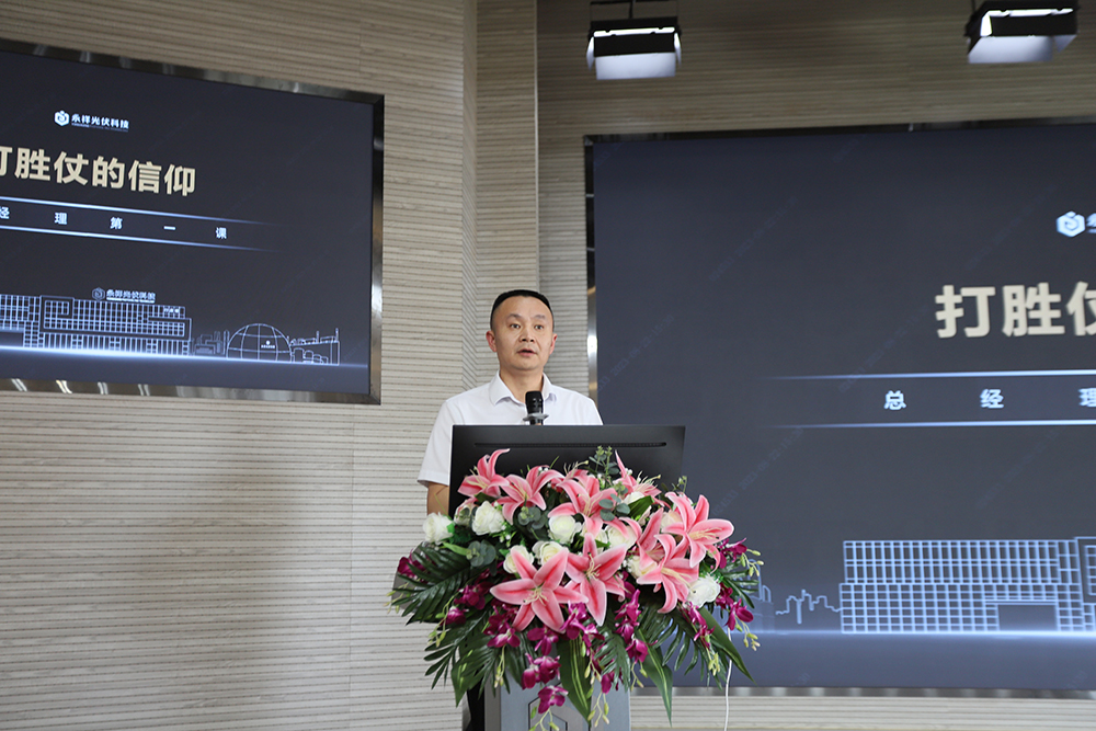 袁總以“打勝仗的信仰”為講授主題,從“未來已來”“何以至未來”兩大板塊分別進行詳細講解。袁總講到,在全球“碳中和”背景下,雙碳新時代、綠色新未來即將到來,通威在劉主席的堅強領導下一路高歌猛進,不斷助力中國光伏牢牢占據(jù)全球主導地位。袁總表示,通威、永祥在世界新能源的舞臺早已搭建,未來已來,光伏科技、硅材料人必須持續(xù)注入“英雄團隊、戰(zhàn)則必勝”的永祥基因,堅信我們從事的是一份實現(xiàn)未來的事業(yè),牢固“打勝仗的信仰”的思想,打造一支戰(zhàn)則必勝的團隊。