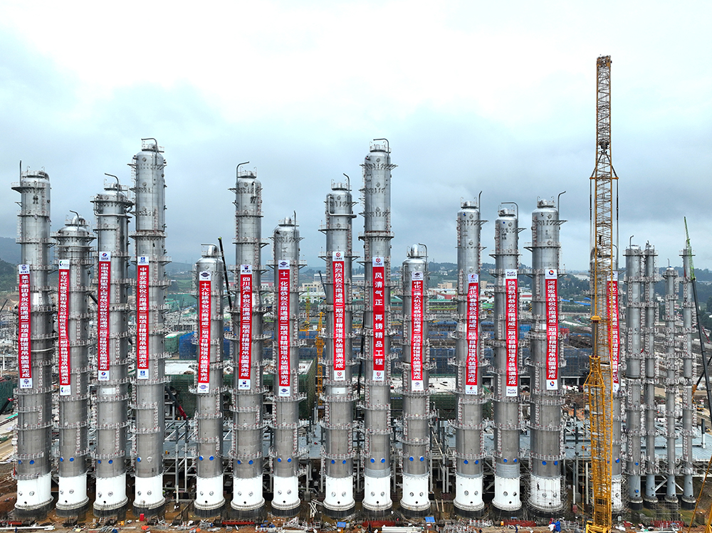 精餾塔是云南通威二期20萬噸高純晶硅綠色能源項目的核心設備,共18座塔38段。自6月15日首段精餾塔開始吊裝,在杜總的領導、相關責任部門的努力、各參建單位的全力配合下,項目部緊密安排籌劃,搶時間、重質量、抓安全,嚴格按照清單進行逐項驗收,確保精餾塔百分百潔凈安裝,塔件焊接工作一次合格率達99.5%,吊裝工作一次就位。實際經過66天奮力沖刺,8月21日精餾裝置最后一根主塔正式吊裝成功,按照節點提前順利完成精餾裝置吊裝任務。
