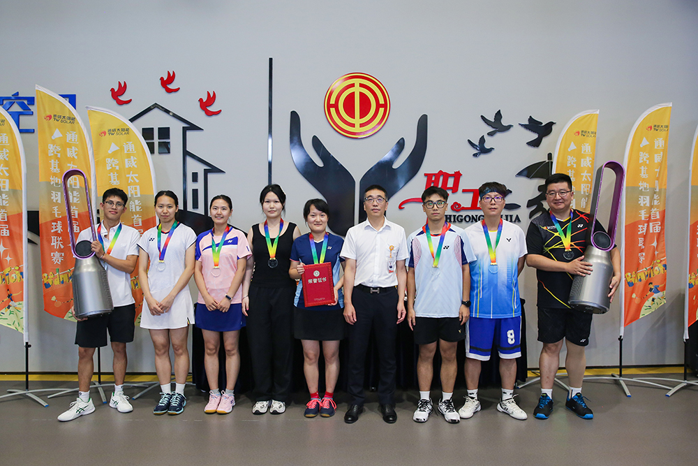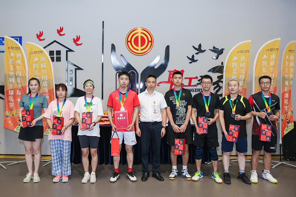 為加強(qiáng)各基地間的交流互動,弘揚(yáng)公司積極向上的企業(yè)文化,豐富全體職工的精神文化生活,8月16日,通威太陽能紅色聚能家舉行首屆跨基地羽毛球聯(lián)賽,來自眉山、金堂、彭山基地及通合項目的羽毛球愛好者齊聚雙流,同臺競技。通威太陽能總經(jīng)理周華蒞臨現(xiàn)場觀賽,通威太陽能副總經(jīng)理宋梟、總經(jīng)理助理陳君,雙流基地總經(jīng)理助理徐濤出席現(xiàn)場并頒獎。