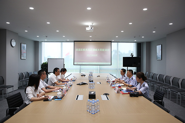 8月2日,雙流區(qū)稅務(wù)局局長(zhǎng)馮文勝一行蒞臨通威太陽(yáng)能雙流基地參觀調(diào)研,通威太陽(yáng)能副總經(jīng)理宋梟熱情接待并座談。