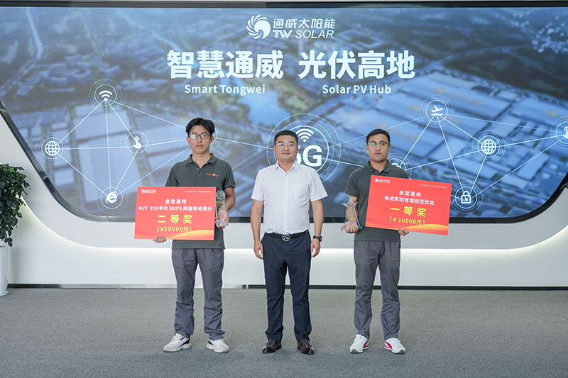 7月17日至24日,通威太陽能順利舉行2023年第二季度“精益生產管理系統提升項目”和“智多星團隊項目”頒獎儀式,通威太陽能金堂基地總經理助理龐三鳳、眉山基地總經理助理姚騫、雙流基地總經理助理徐濤出席活動并為獲獎項目代表頒獎。