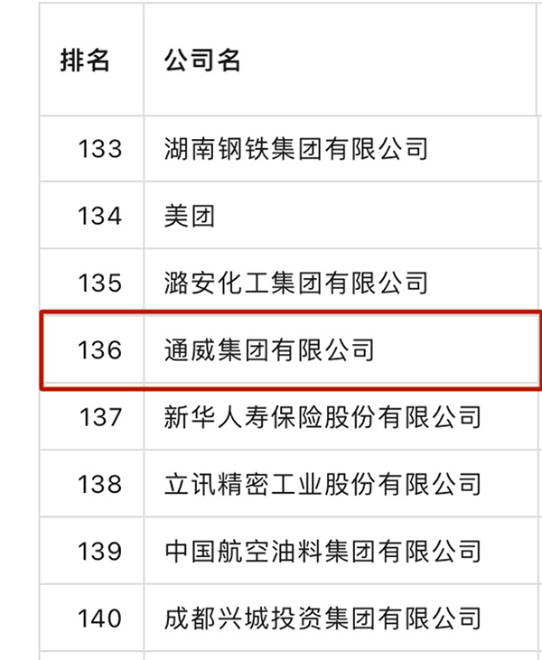 通威榮列2023《財富》中國500強第136位