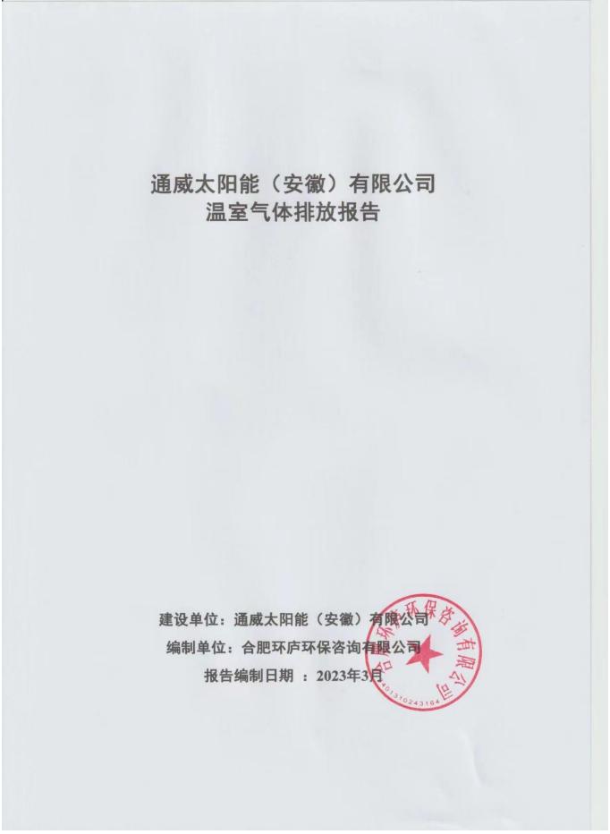 通威太陽能(安徽)有限公司產(chǎn)品產(chǎn)品碳足跡、溫室氣體核查披露