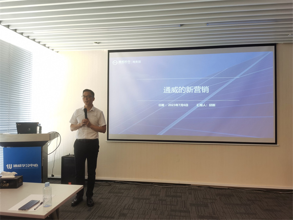為讓員工進(jìn)一步理解企業(yè)文化內(nèi)涵,凝聚共識(shí),齊心奮斗,7月6-7日,通威股份光伏商務(wù)部組件營(yíng)銷(xiāo)半年度專(zhuān)題培訓(xùn)在成都順利召開(kāi),通威股份光伏商務(wù)部組件全球營(yíng)銷(xiāo)總經(jīng)理邱新出席培訓(xùn)。