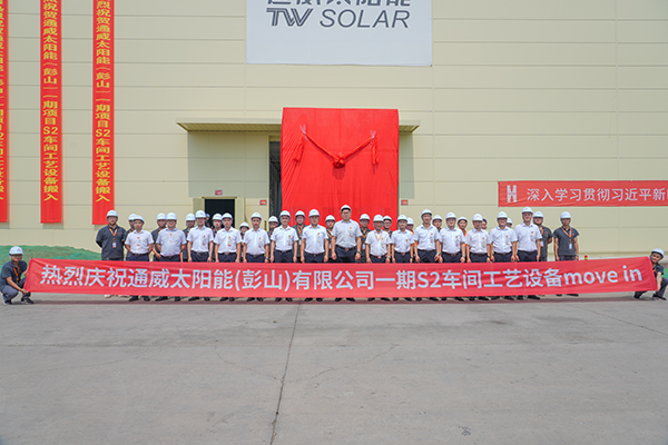 2023 年,是通威太陽能承上啟下的第一個十年,是關鍵之年,也是獻禮之年。在通威太陽能彭山基地一期高效晶硅電池項目S1車間安全、高效地完成設備搬遷工作后,7月10日,通威太陽能彭山基地 S2車間工藝設備 Move In 如期舉行,再邁新臺階。通威太陽能彭山基地總經理助理顧峰攜相關部門負責人、員工代表共同見證這一重要時刻。