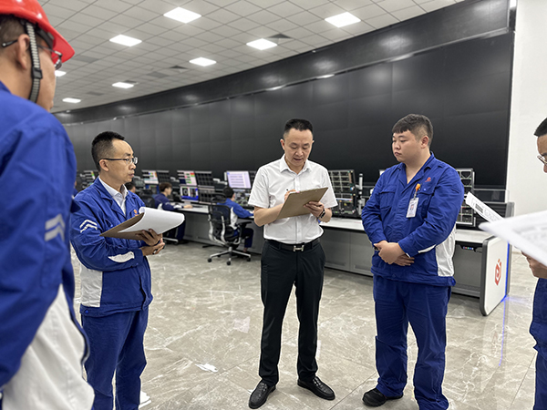 6月28日上午,永祥光伏科技總經(jīng)理袁中華深入生產(chǎn)一廠集控中心進(jìn)行員工JCC檢查。副總經(jīng)理張軍、生產(chǎn)一廠副廠長王小龍、安全環(huán)境部副部長何翔及相關(guān)人員參加。
