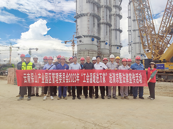 6月26日,保山市總工會準備了4200份慰問品到云南通威二期項目現場開展2023年“工會溫暖進萬家”送清涼暨法律宣傳活動,昌寧園中園黨工委副書記李學會主持活動,市總工會三級調研員王金明、市總工會辦公室主任吳玉平出席活動,云南通威二期項目指揮長助理李業新、戰略發展部部長高凱及騰沖援邊律師事務所代表、施工單位100名農民工代表參加活動。