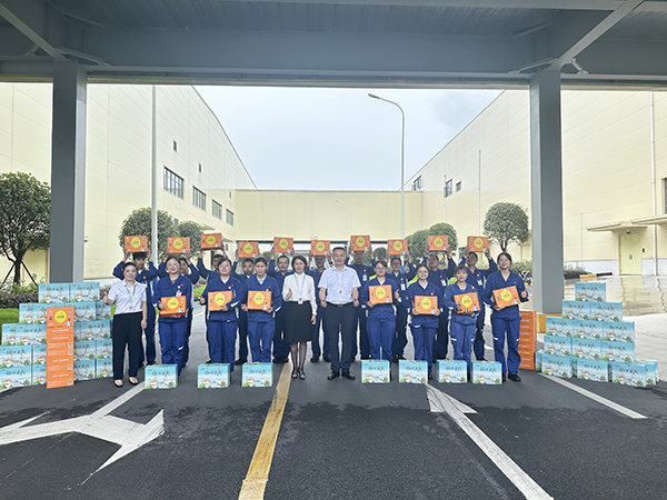 慰問現(xiàn)場,袁總為現(xiàn)場員工和員工的家人們送去節(jié)日問候與祝福,并祝愿大家端午安康。袁總親切叮囑大家注意合理安排工作時間,注意身體健康,做好夏季防暑降溫措施。