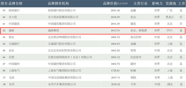 通威位列榜單第42位